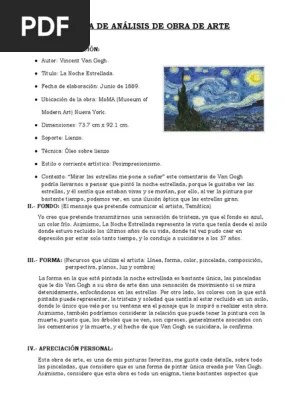 Más genial Analisis De La Obra De Arte La Noche Estrellada De Vincent Van Gogh Pdf Vincent Van Gogh Pinturas